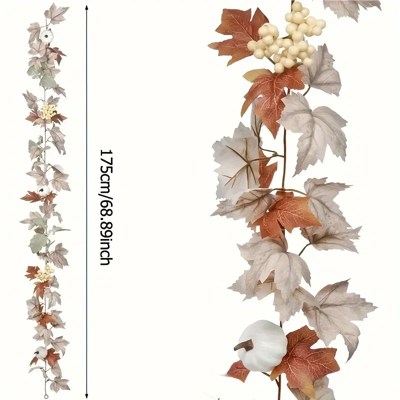 1 pcs Autumn And Winter Flower Wreath Decoration, 6-foot Autumn Maple Leaf Wreath - Christmas and Halloween fireplace decoration