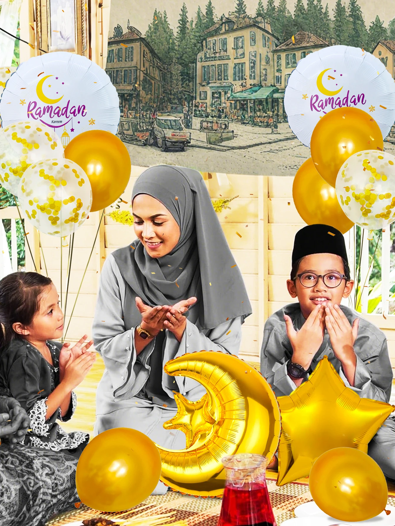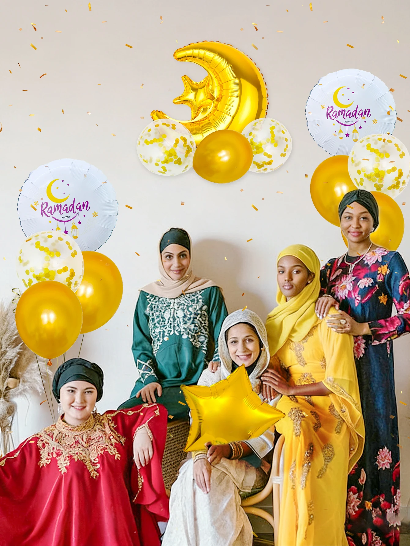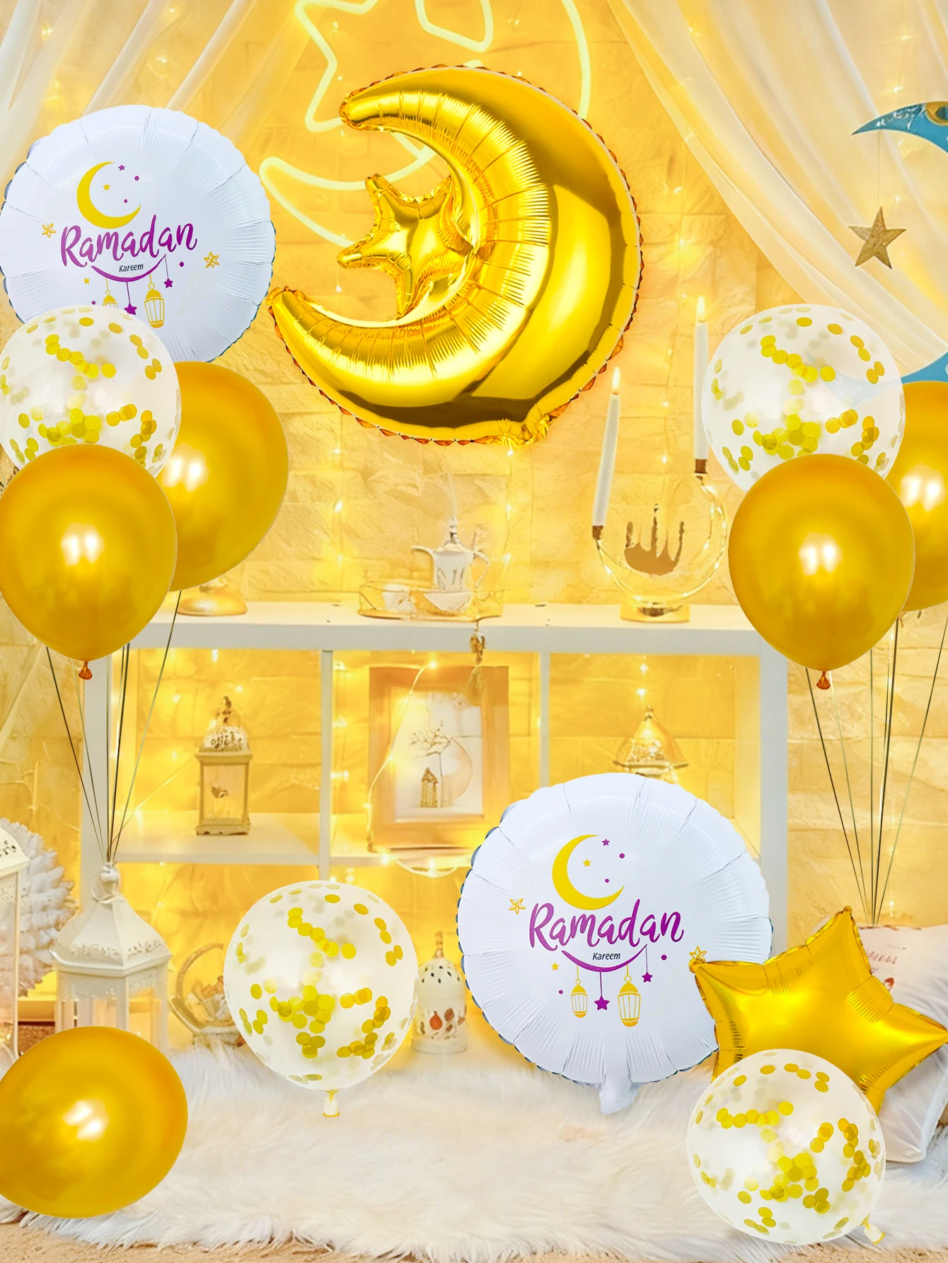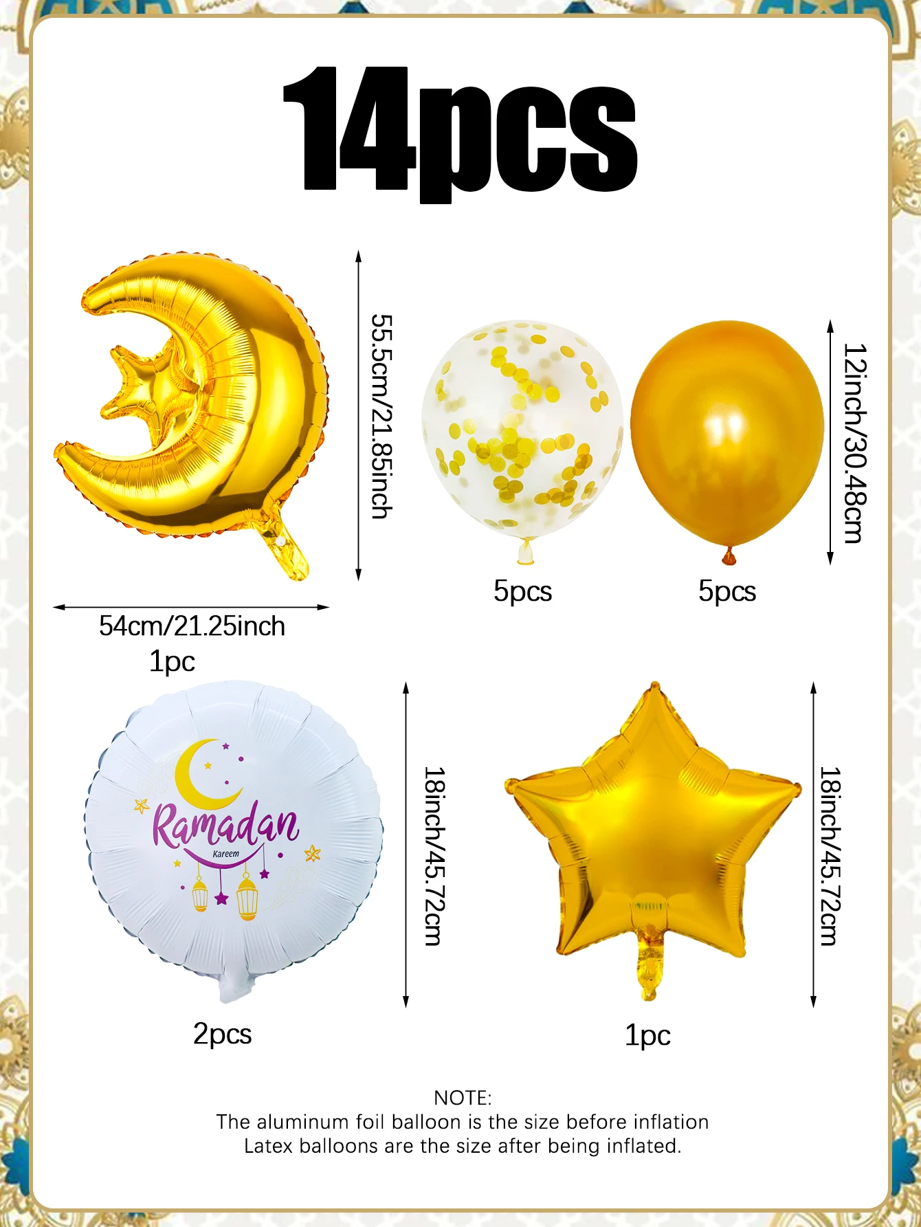 14pcs Gold Ramadan Balloon Set, suitable for Eid party, Eid home decoration, Ramadan Kareem