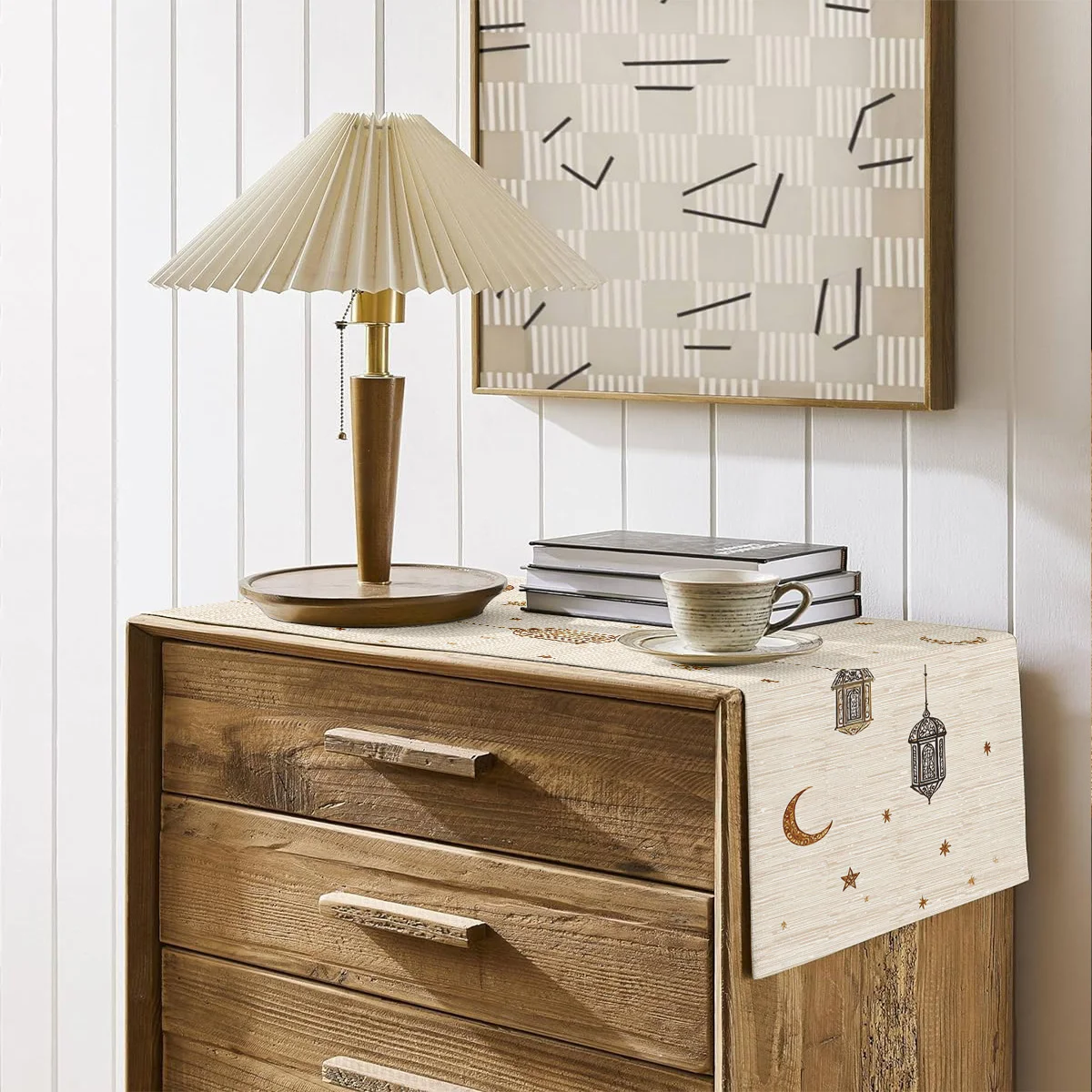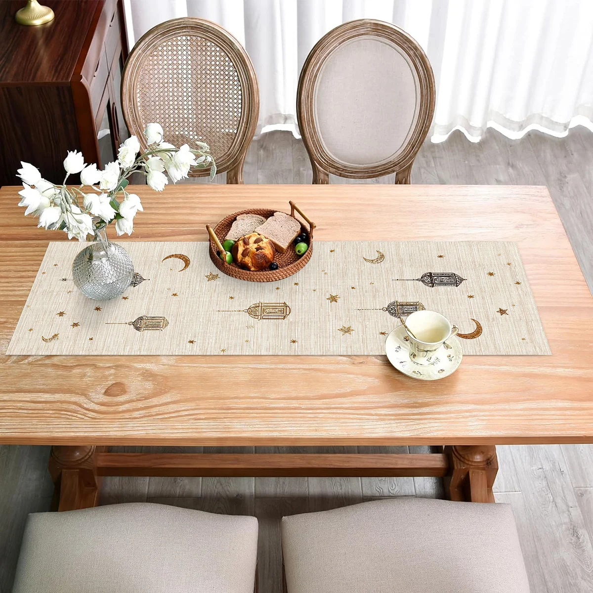 1pcs Ramadan Eid Mubarak Polyester Table Runner Party Decor Golden Lantern Eid Al Fitr Dining Table Runners Ramadan Decorations