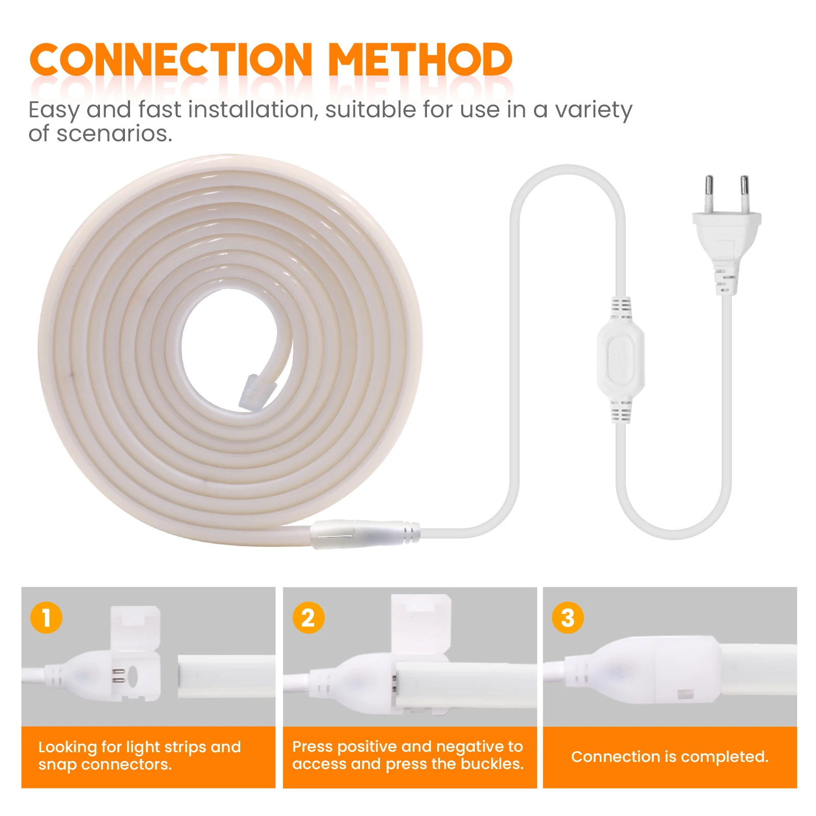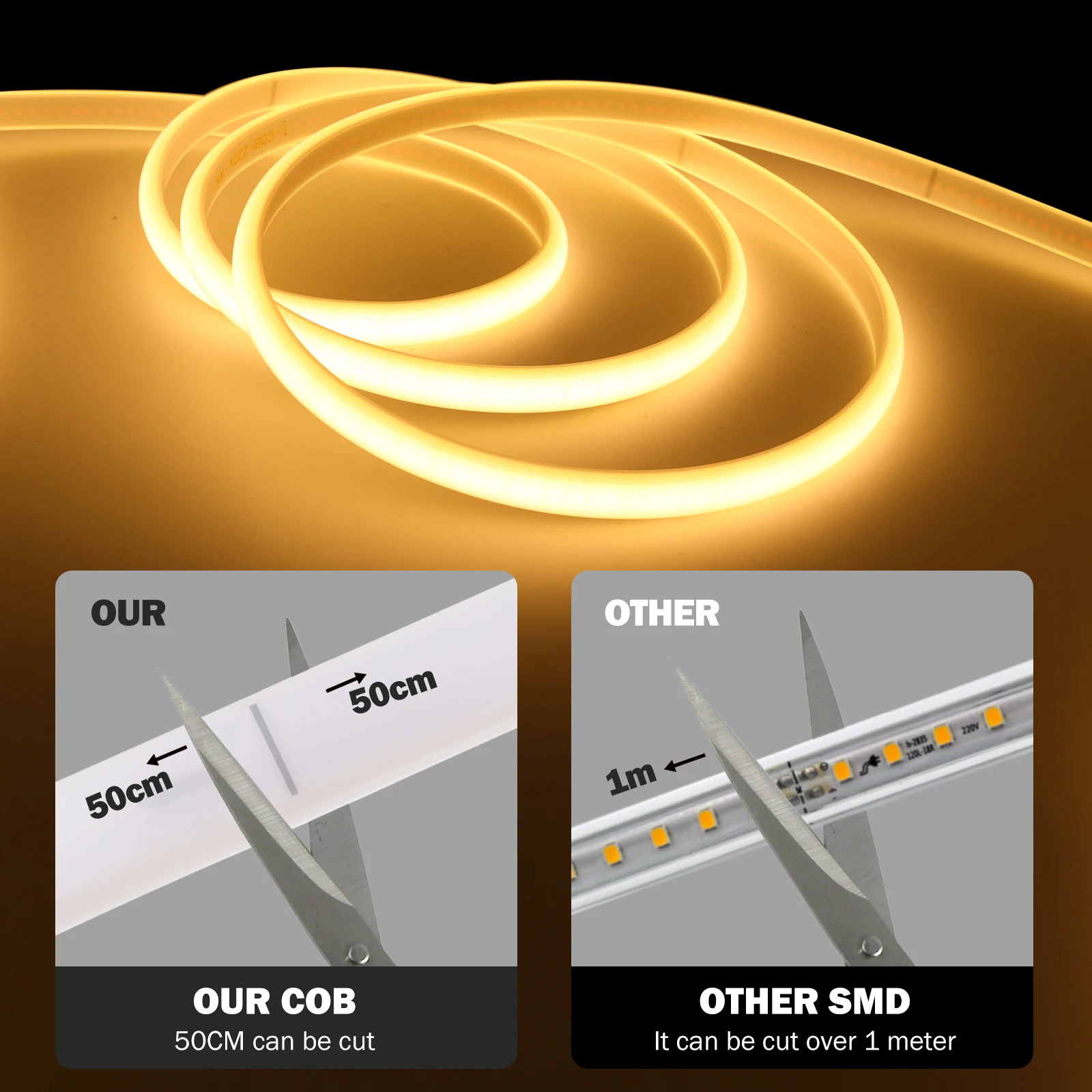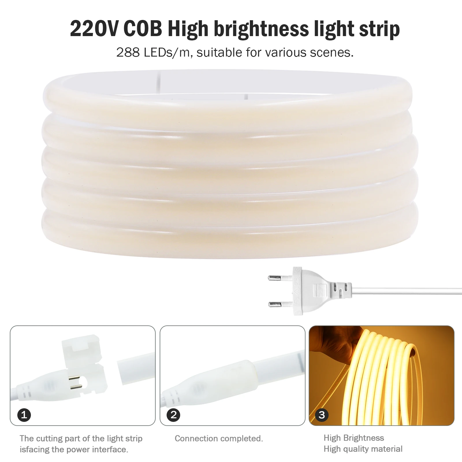 220V COB Neon LED Strip Light 288LEDs/m High Density COB Linear Lighting Tape Flexible Waterproof Outdoor Lamp Warm Cool White