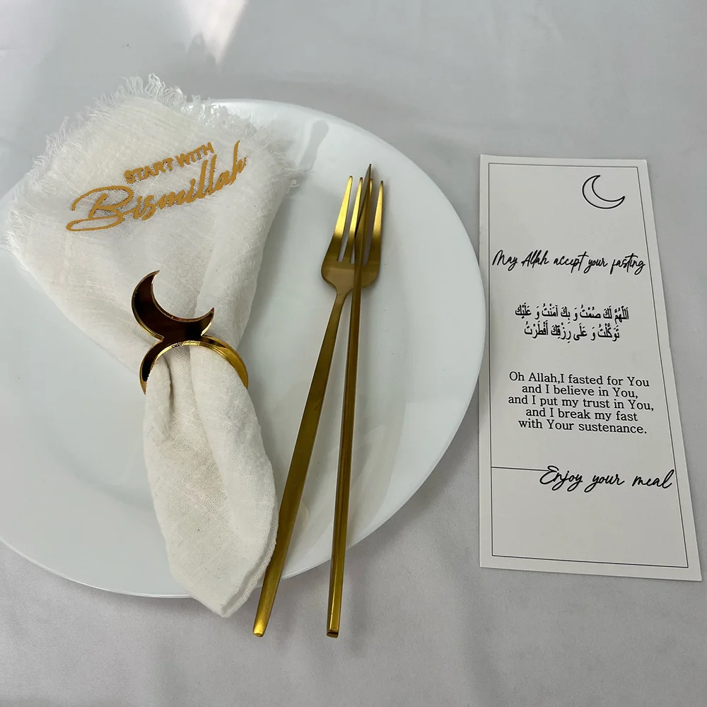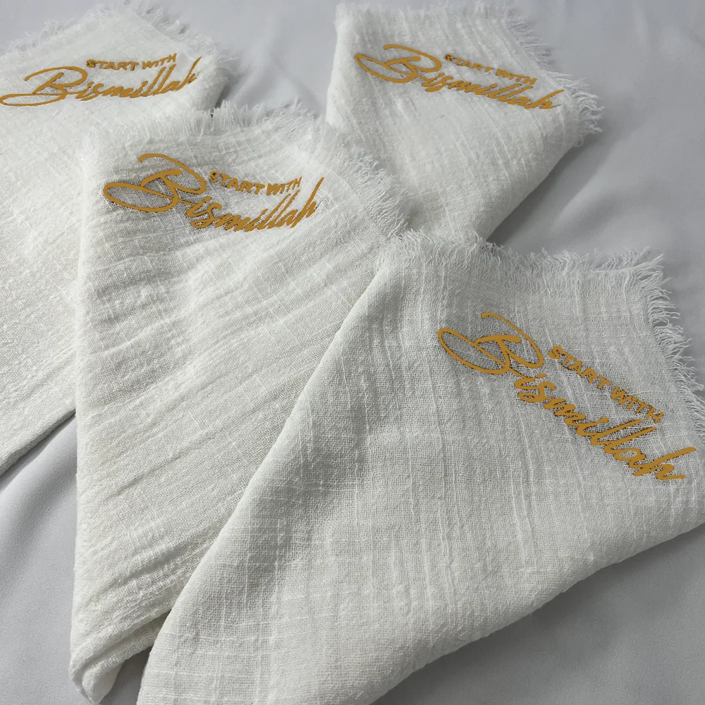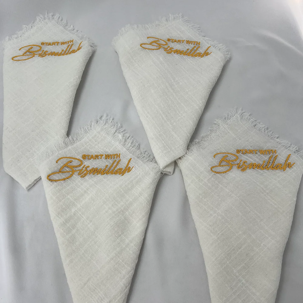 4Pcs Start with Bismillah Napkin Ramadan Mubarak Accessories Eid Al-Fitr Table Decorations Muslim Holiday Supplies Islamic Gifts