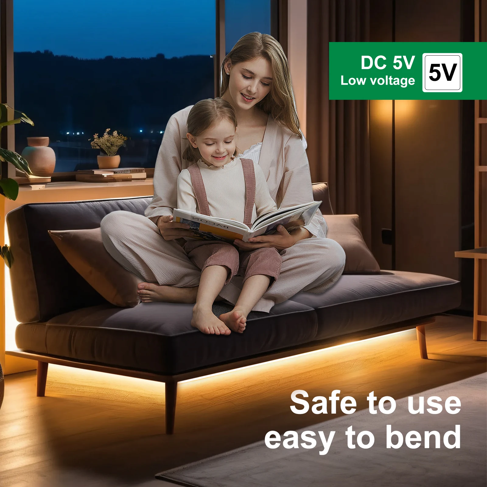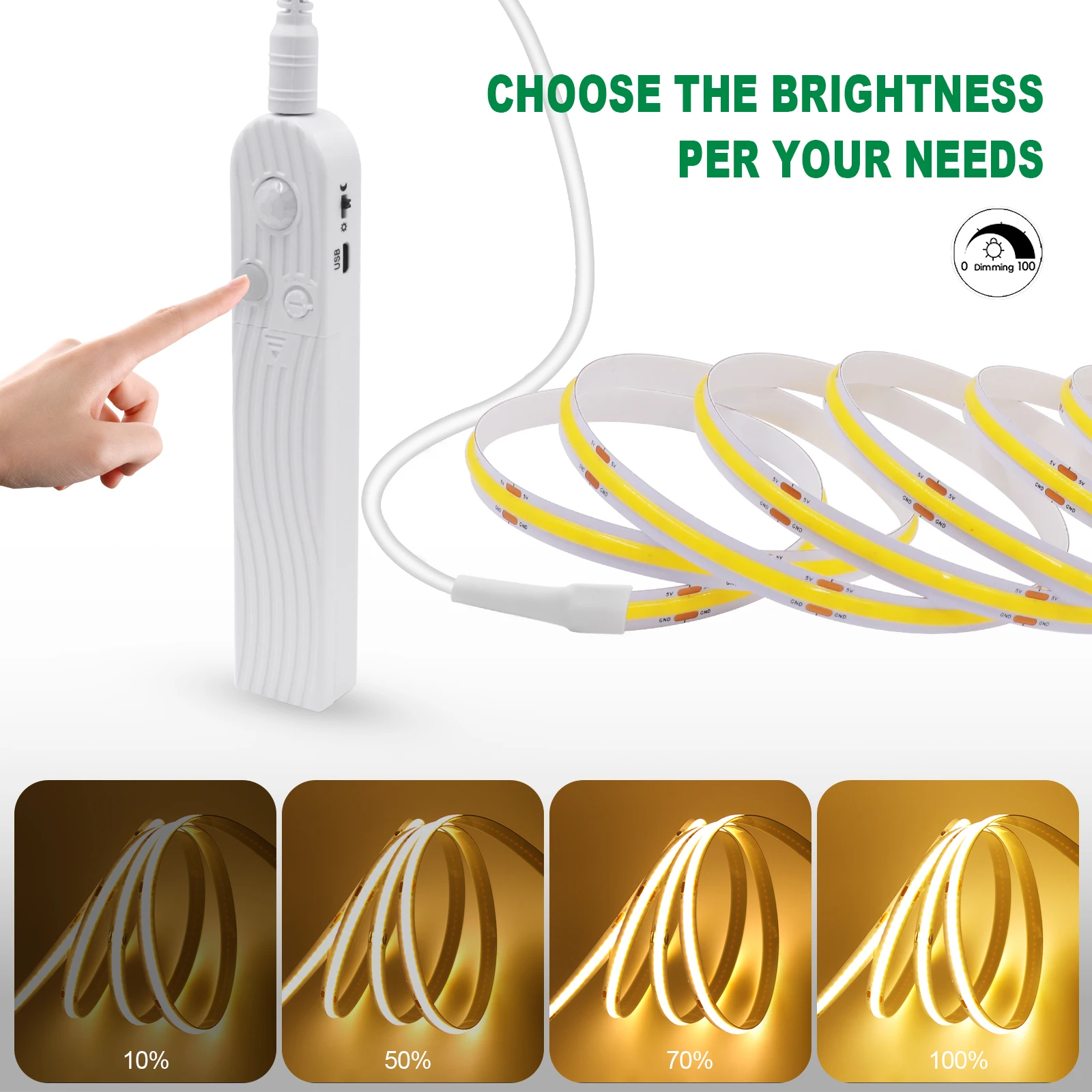 DC5V COB LED Strip with PIR Motion Sensor Battery Box 8MM 320Leds/m Flexible Ribbon Tape for Room Decor 3000K 4000K 6000K