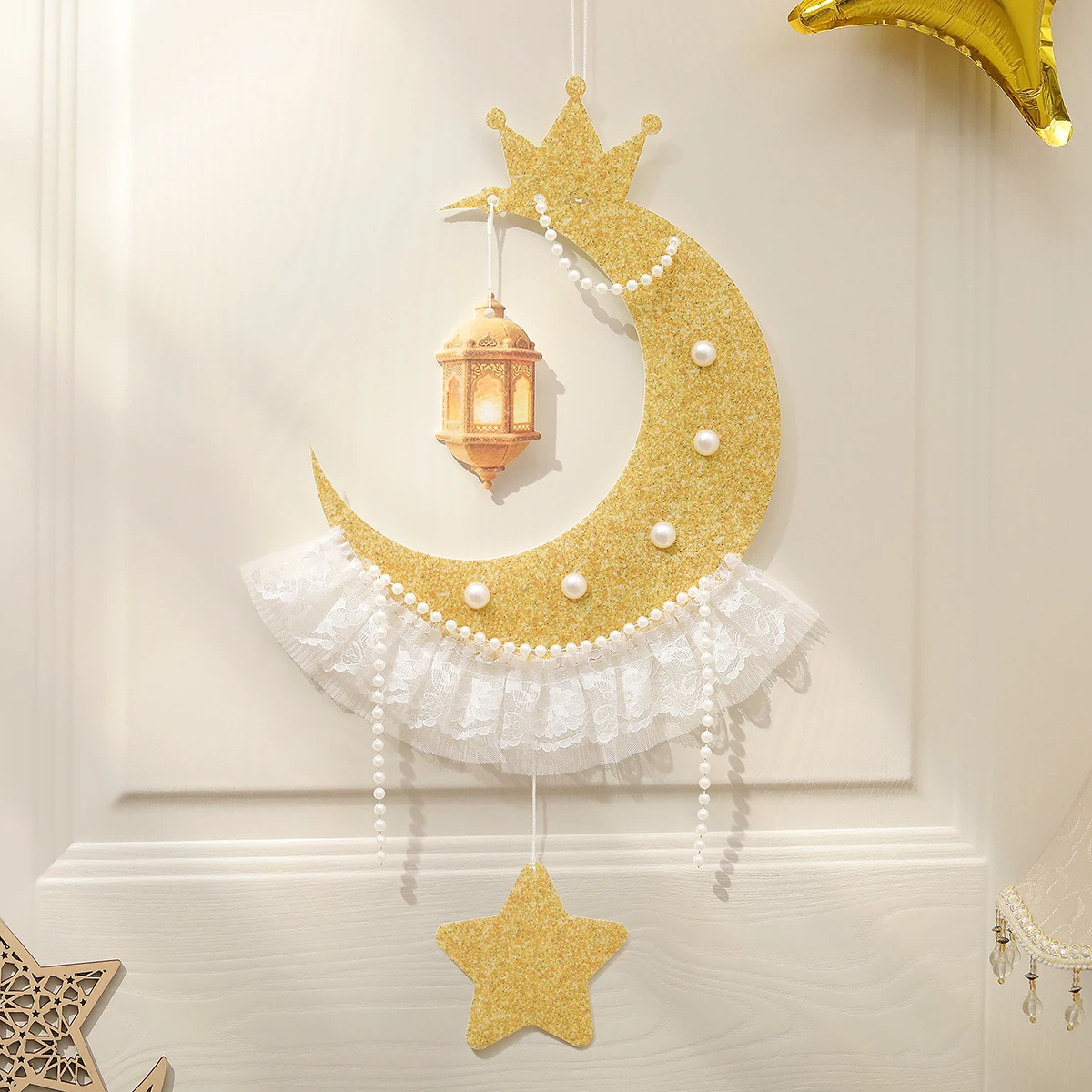 Eid Mubarak; Ramadan Moon and Star Party Background Wall Decor Hanging for Door Banner