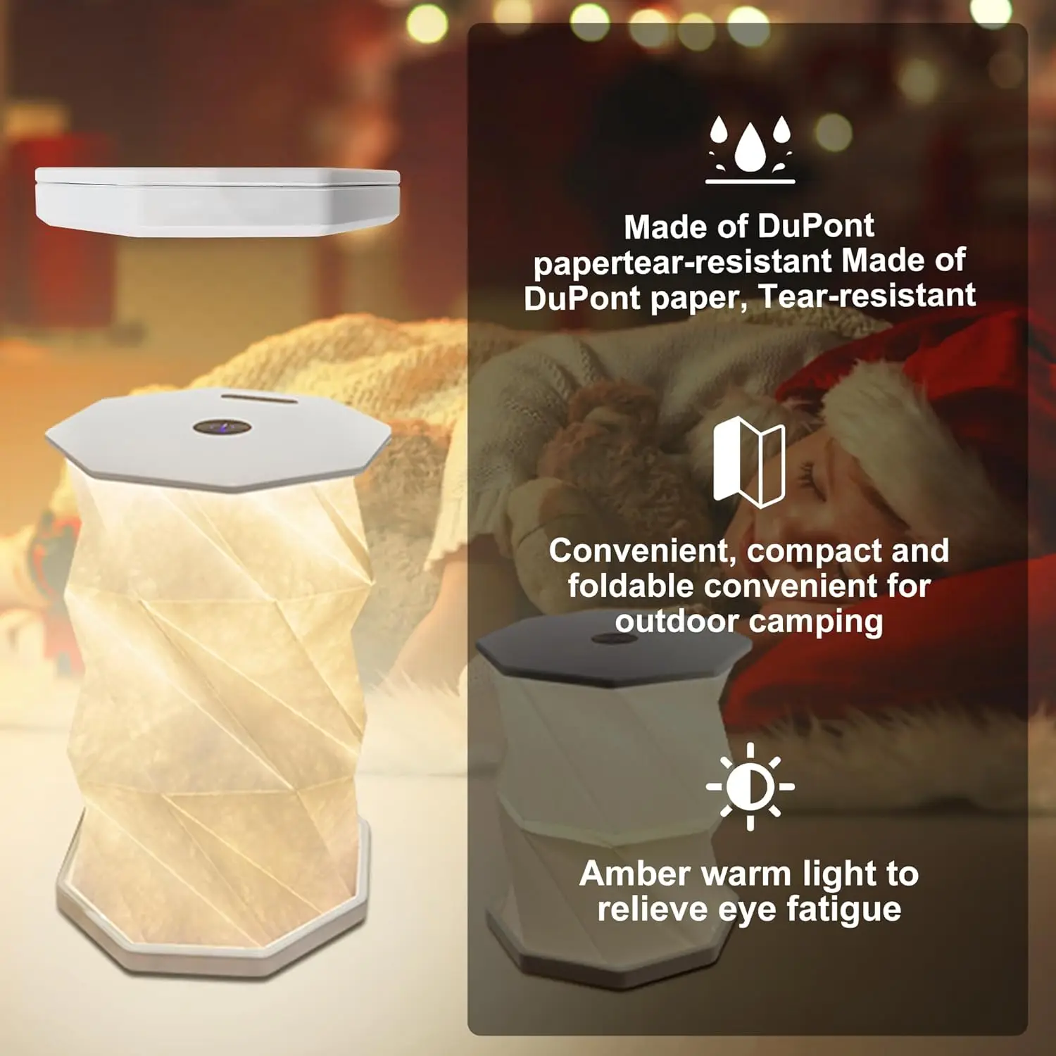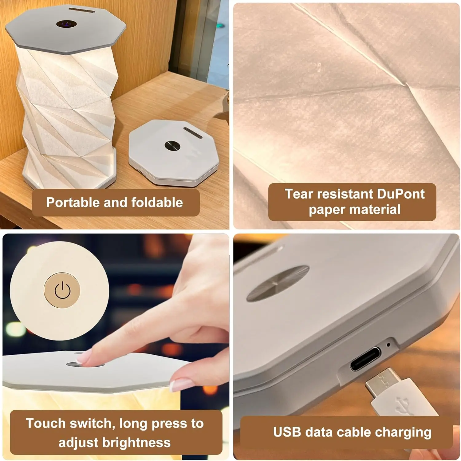 Portable Atmosphere Light Rotating Foldable Night Light Paper Lantern LED Touch Dimmer Bedhead Decoration Gift Table Book Light