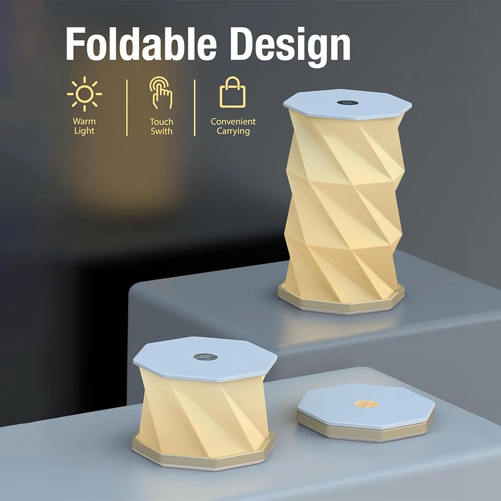 Rotating Foldable Night Light Paper Lantern Portable Atmosphere Light LED Touch Dimmer Bedhead Decoration Gift Table Book Light