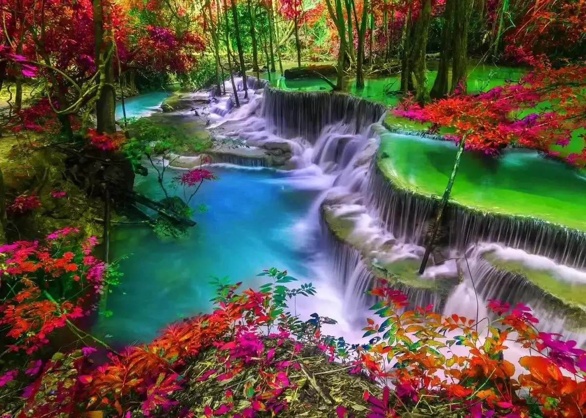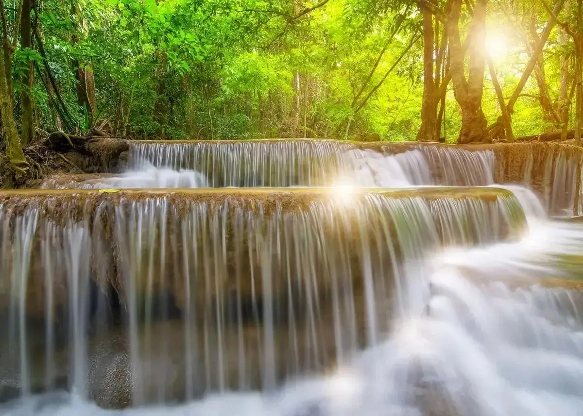 Serene Landscape Waterfall Canvas Painting with Green Tree Forest Wall Art Prints for Living Room Home Decor Unframed Poster fo